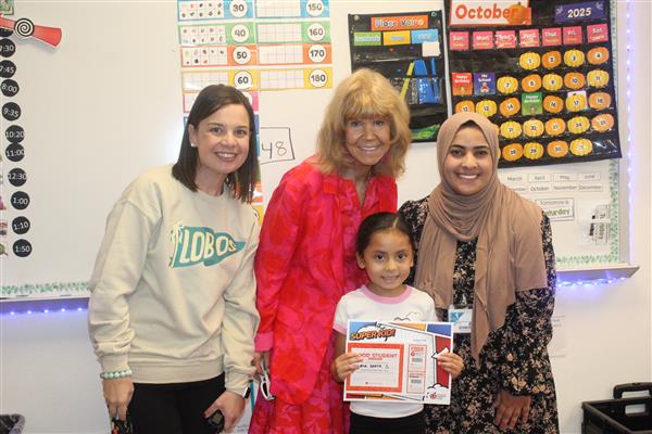 WESD Assistant Superintendent Dr. Lyn Bailey surprised the October 2025 SUPER Kids from Arroyo School, Cactus Wren Elementary School and Sunset Elementary School on Oct. 17.