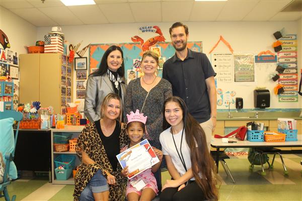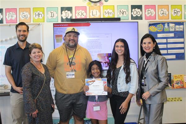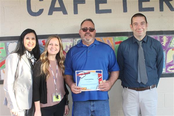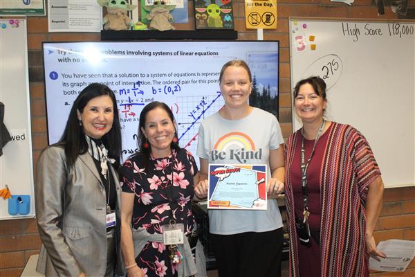 Melissa Medley, fifth grade teacher and Frank Schilling, facilities manager at John Jacobs; Erika DeBruhl, first grade teacher and Alejandro Mariscal (not pictured), music teacher at Lookout Mountain; Marisa Amaya, long term substitute and Cruz (Elva) Loa, nutrition services helper at Moon Mountain; and Cindy Carrillo, nutrition services manager and Rachel Zupancic, math teacher at Mountain Sky!Each of these standout staff members received a certificate and a Starbucks gift card thanks to the generosity of Veregy!
